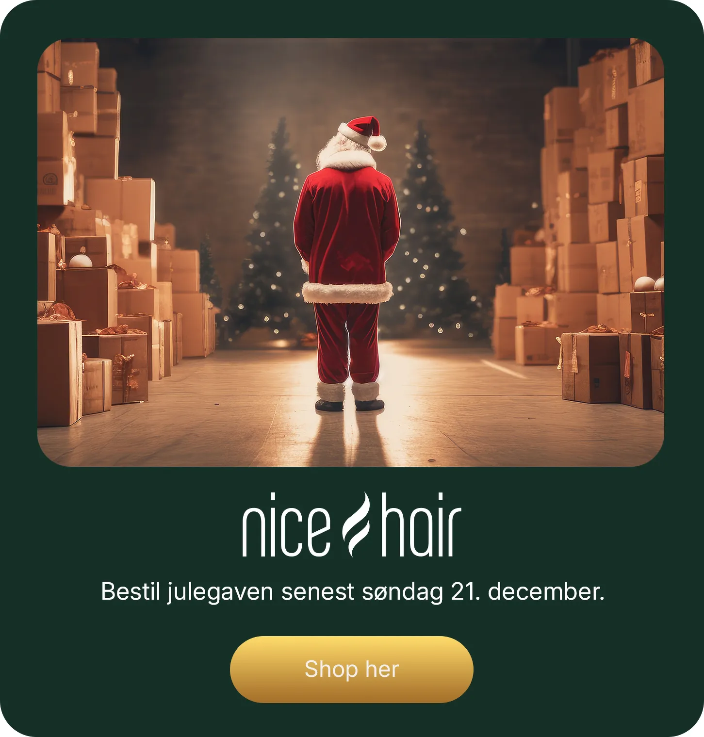 Jeg accepterer derudover, at NiceHair ApS samt Emarsys, Meta og Google indsamler oplysninger om læsning af markedsføringsmeddelelser. Du kan læse mere herom i vores [cookiepolitik].
