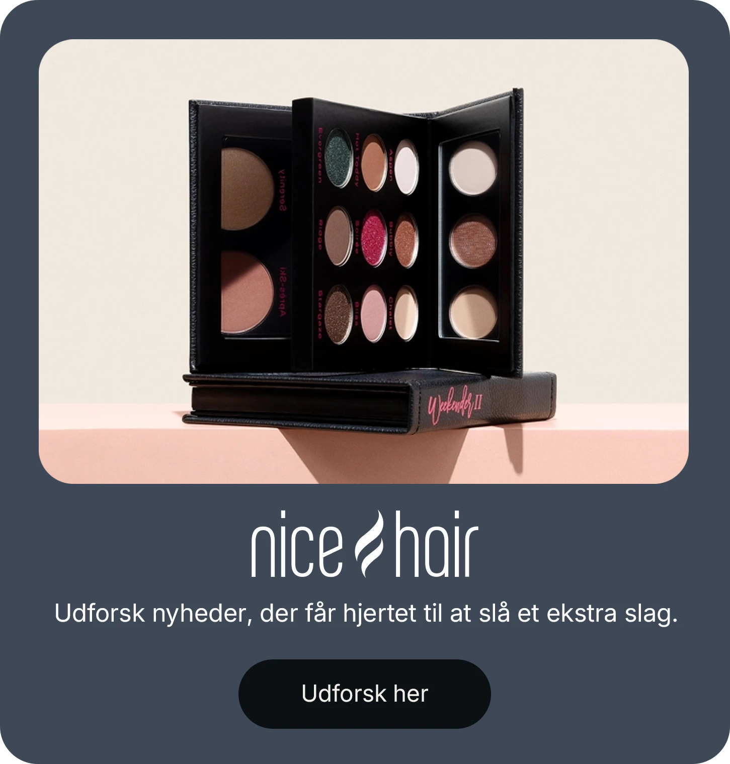 Du kan også besøge vores beauty community NiceHair & Me. Her finder du et fællesskab af personer med kærlighed og interesse for skønhedsrelaterede emner, der kommer med anbefalinger og gode råd til hinanden. Vi håber, du vil være med!