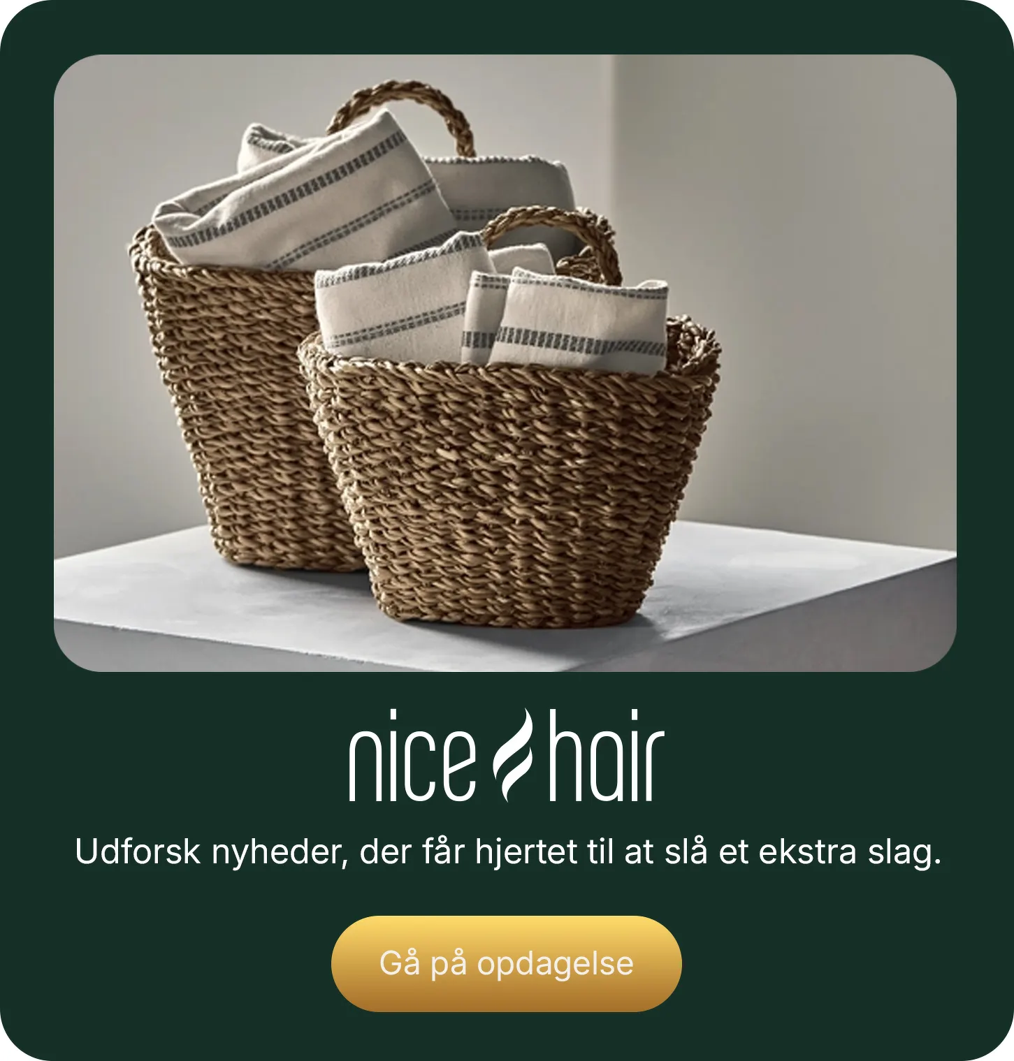 Du kan også besøge vores beauty community NiceHair & Me. Her finder du et fællesskab af personer med kærlighed og interesse for skønhedsrelaterede emner, der kommer med anbefalinger og gode råd til hinanden. Vi håber, du vil være med!