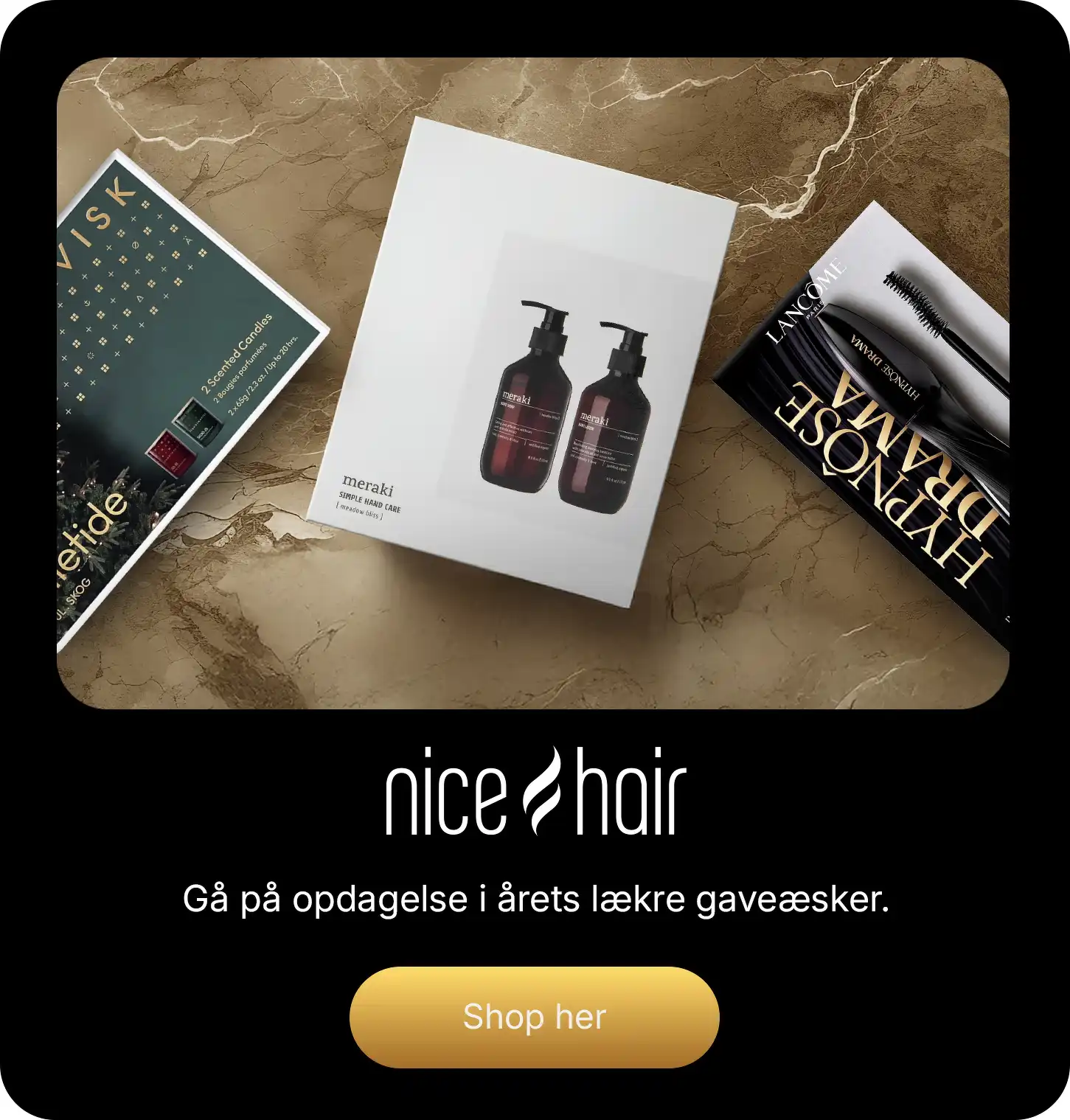 Du kan også besøge vores beauty community NiceHair & Me. Her finder du et fællesskab af personer med kærlighed og interesse for skønhedsrelaterede emner, der kommer med anbefalinger og gode råd til hinanden. Vi håber, du vil være med!