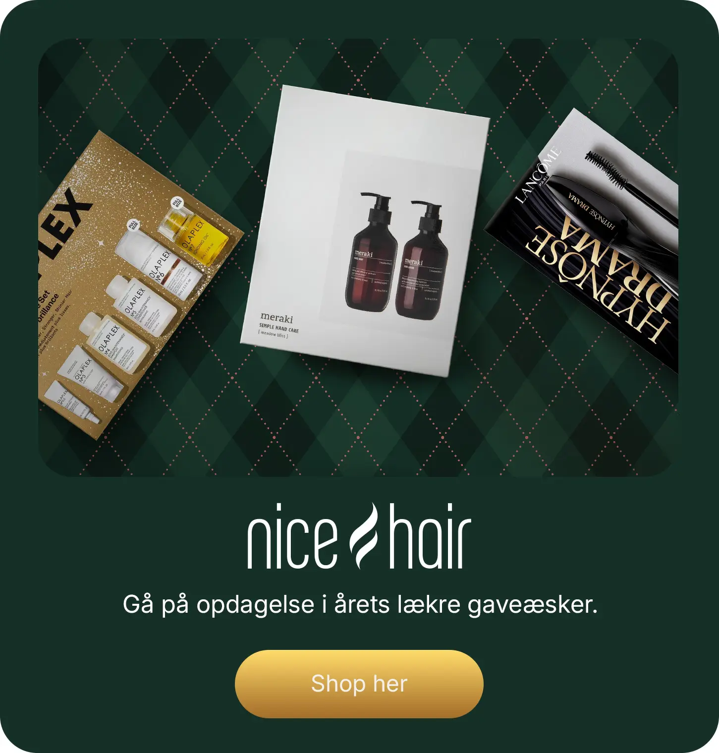 Du kan også besøge vores beauty community NiceHair & Me. Her finder du et fællesskab af personer med kærlighed og interesse for skønhedsrelaterede emner, der kommer med anbefalinger og gode råd til hinanden. Vi håber, du vil være med!