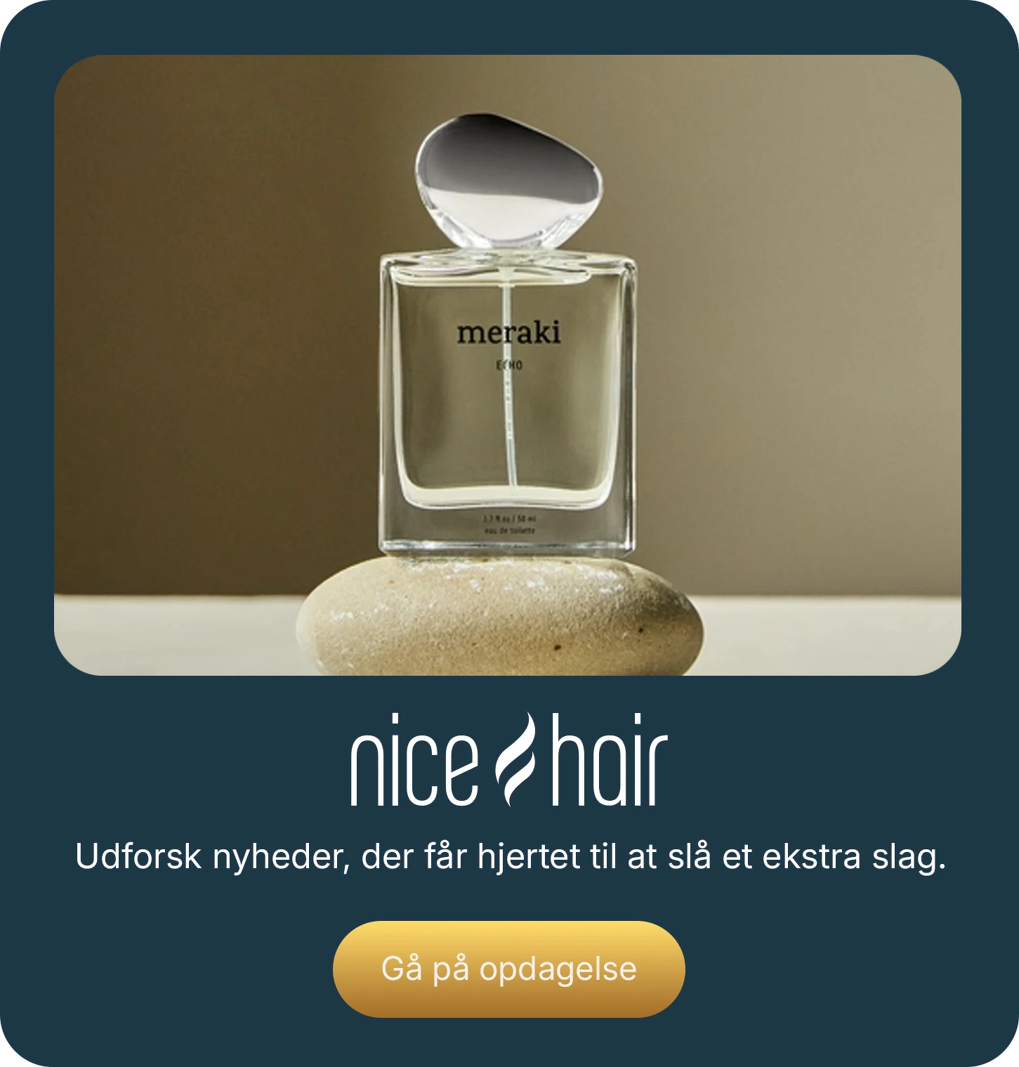 Du kan også besøge vores beauty community NiceHair & Me. Her finder du et fællesskab af personer med kærlighed og interesse for skønhedsrelaterede emner, der kommer med anbefalinger og gode råd til hinanden. Vi håber, du vil være med!