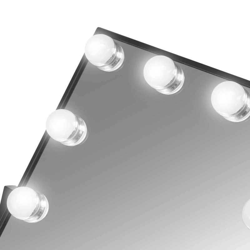 Den slanke sorte ramme omgiver et panel af 12 justerbare LED-pærer, der efterligner den belysning de professionelle makeup artister får de bedste resultater ud af. Med den innovative touch-funktion er kontrol over lysstyrken bogstaveligt talt lige ved fingerspidserne. Med få lette tryk, kan du skabe det helt ideelle lys til enhver anledning. Pærerne har tre forskellige farvetoner, der lader dig vælge mellem køligt, neutralt og varmt lys, så din makeup altid ser perfekt ud under enhver belysning.