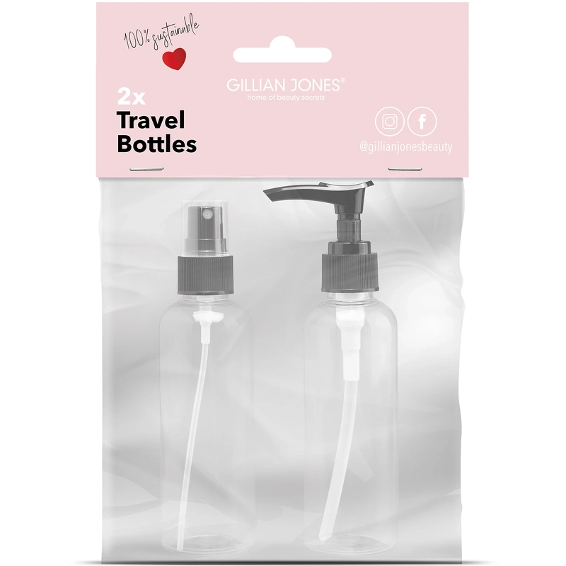 Gillian Jones Travel Size Bottles er to praktiske og rejsevenlige flasker, der hver har en kapacitet på *100 ml.** Disse flasker er designet til at være kompakte og lette at tage med på farten, hvilket gør dem ideelle til rejser, fitnesscentre, campingture eller andre aktiviteter, hvor pladsen er begrænset.