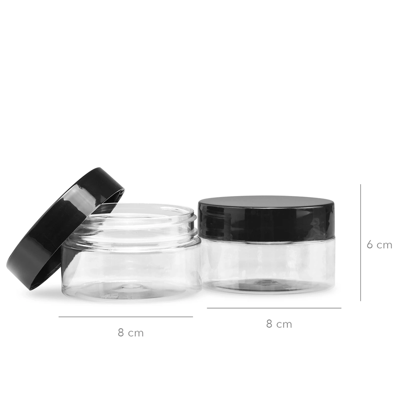 Disse krukker er lavet af holdbart materiale og har tætsluttende låg, der sikrer, at indholdet ikke lækker ud under transport. De er perfekte til at opdele og organisere dine produkter for at undgå spild og kaos i toilettasken.