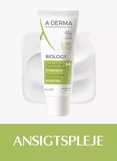 Hvis du ønsker en hudplejeserie med dermatologisk og økologisk certificeret ansigtspleje, er BIOLOGY-serien fra A-DERMA til dig. Serien er anbefalet af hudlæger og er udviklet i samarbejde med forbrugere. Den er økologisk certificeret af ECOCERT® i henhold til COSMOS ORGANIC. Produkterne opfylder helt specifikke krav om økologisk indhold og produktion samt emballage, der er både genanvendt og genanvendelig. Alle hudplejeprodukterne i serien indeholder minimum 99% naturlige ingredienser, der alle er parfumefri. Produkterne indeholder den økologiske plantesaft fra Rhealba® havren, der øger hudens egen produktion af hyaluronsyre med 83%. Ud over sine beroligende egenskaber er plantesaften også en effektiv fugtgiver, som hjælper med at opretholde hudens balance. Hele serien er testet på hud med tendens til allergi og du finder løsninger på både rødme, kløe, tørhed og reaktiv hud i serien. Den består af både en fugtgivende rens og beroligende cremer, hvor du har rig mulighed for at vælge netop den formulering, der passer bedst til dig og din sarte hud. Hele ideen er, at du kan mixe og matche produkterne, så du får din egen skræddersyede hudplejerutine. En beskyttende, beroligende og fugtgivende serie, som din sarte hud ikke vil være foruden.