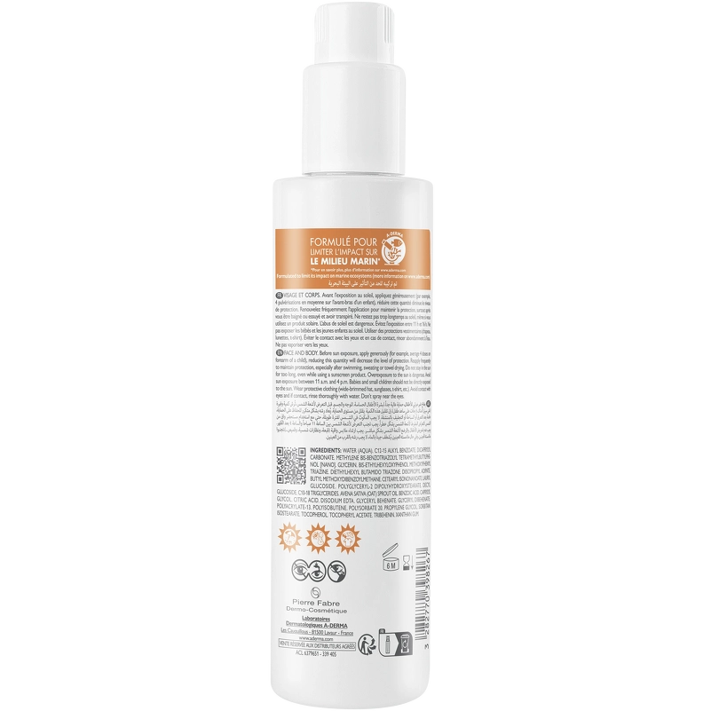 A-DERMA Protect Kids Spray SPF 50+ er fyldt i en praktisk sprayflaske, som gør påføringen let. Den har en let tekstur, som er nem at fordele på huden og giver ikke en klistret fornemmelse. Et musthave til alle familier, der sikrer de mindste medlemmer optimal beskyttelse mod solens skadelige virkninger.