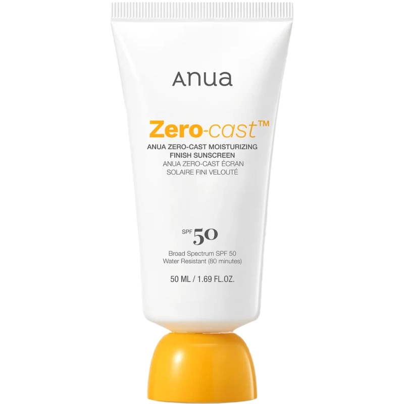 Anua Zero-Cast Moisturizing Finish Sunscreen SPF 50 er en solcreme, som kan beskytte din hud mod solen med bredspektret SPF 50. Den har en let tekstur, der hverken føles tung eller klistret på din hud og er vandafvisende i op til 80 minutter.