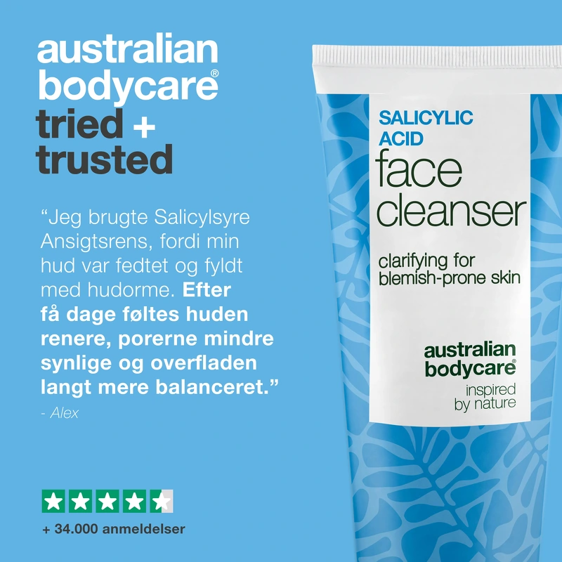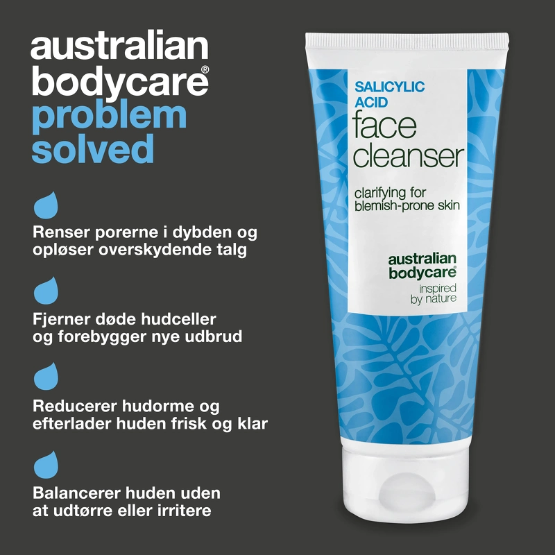 Australian Bodycare Salicylic Acid Face Wash er er udviklet til dig, der døjer med bumser, hudorme og fedtet hud. Rensen renser i dybden uden at udtørre og hjælper huden med at blive mere klar, frisk og i balance.