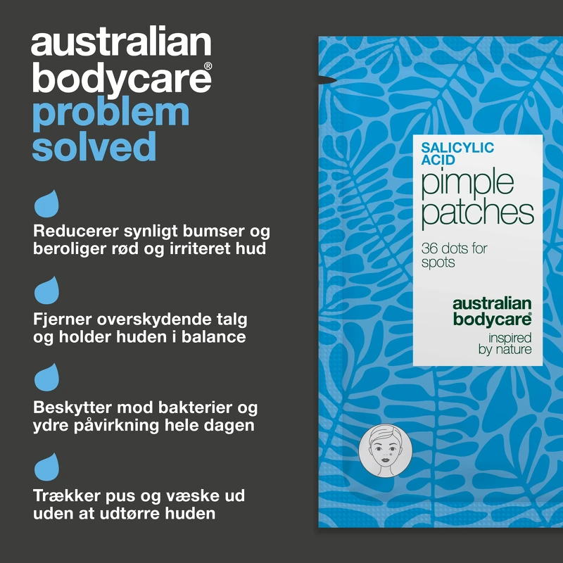 Australian Bodycare Salicylic Acid Pimple Patches er effektive bumseplastre med salicylsyre, der hurtigt og nemt reducerer bumser.