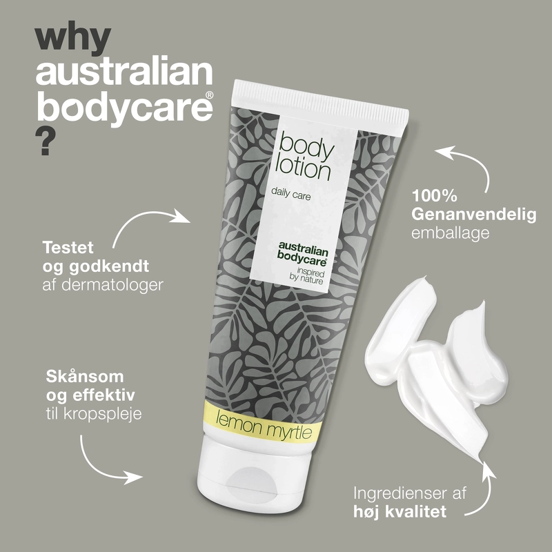 Ved dagligt brug vil man opnå en smidig og sund hud, og da bodylotionen både virker lindrende og kølende, er den også yderst velegnet at bruge efter solbadning. Da bodylotionen trænger så hurtigt ind, kan man hurtigt få tøj på efter påføring. Denne variant er også tilsat lemon myrtle, som giver en skøn, forfriskende citrusduft, men har også mange gavnlige egenskaber. Blandt andet er det med til at stimulere en sund hud, ligesom det også bidrager til den fugtgivende og antibakterielle effekt.