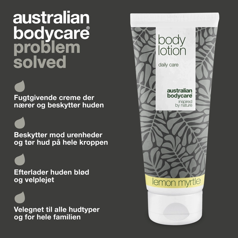 Australian Bodycare Body Lotion er en plejende bodylotion, der er velegnet til alle hudtyper. Cremen er yderst drøj i brug, og vil efterlade huden blød og velplejet. Den er med naturlig, australsk Tea Tree Oil, som modvirker bakterier, og dette mindsker risikoen for urenheder på kroppen.