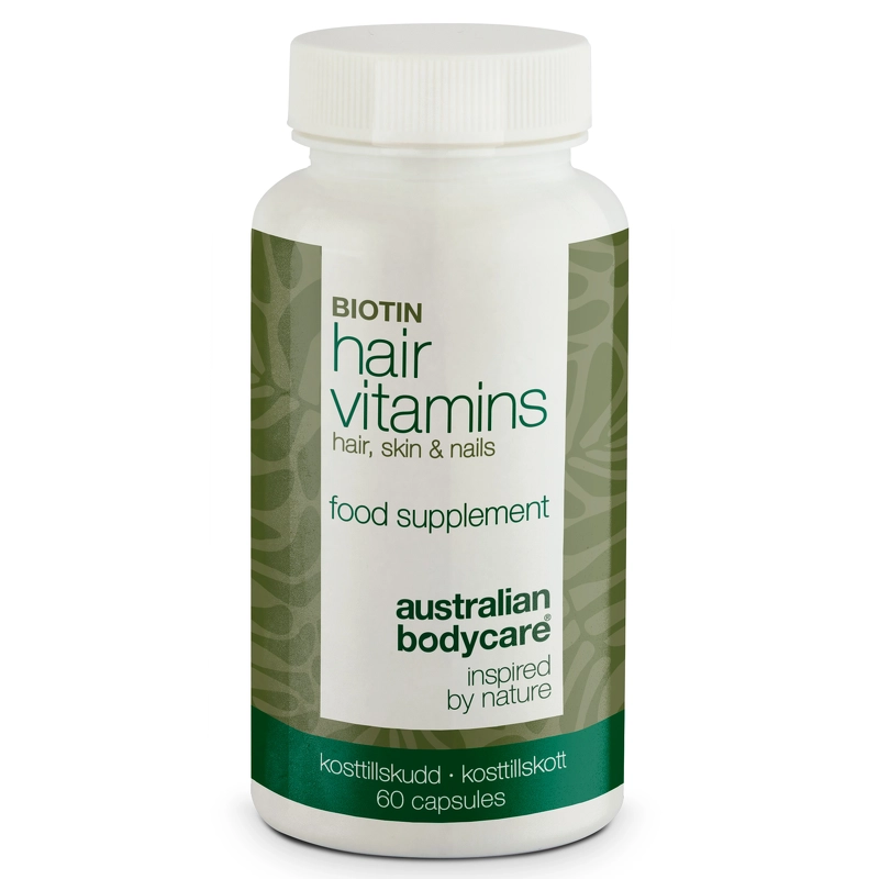 Australian Bodycare Hair Vitamins e er et kosttilskud der har til formål at mindske hårtab. De indeholder blandt andet selen, biotin og zink som bidrager til vedligeholdelse af et normalt hår. Derudover er de med kobber der bidrager til en normal pigmentering af håret. Et godt supplement til Australian Bodycare Hair Care serien.