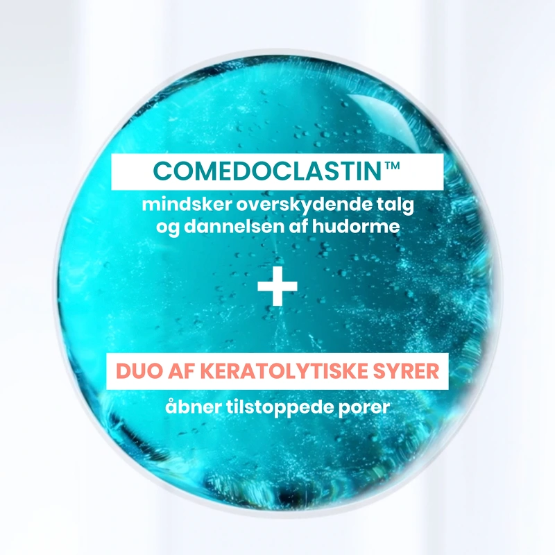 Formuleringen kombinerer en duo af peelende syrer, som åbner tilstoppede porer. Den aktive ingrediens Comedoclastin™ mindsker overskydende talg og dannelse af hudorme. Derudover tilfører Avène Termalkildevand beroligende pleje til huden og hjælper med at dæmpe irritation.
