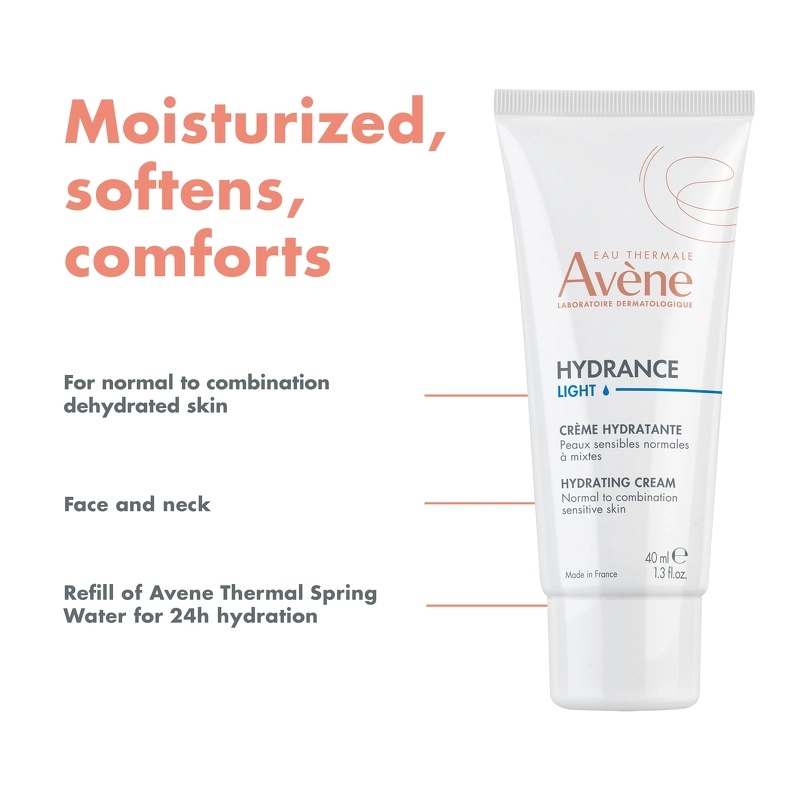 Find mere fra dette mærke:Avéne Hydrance Light Cream er en fugtgivende ansigtscreme til normal/kombineret, dehydreret hud.