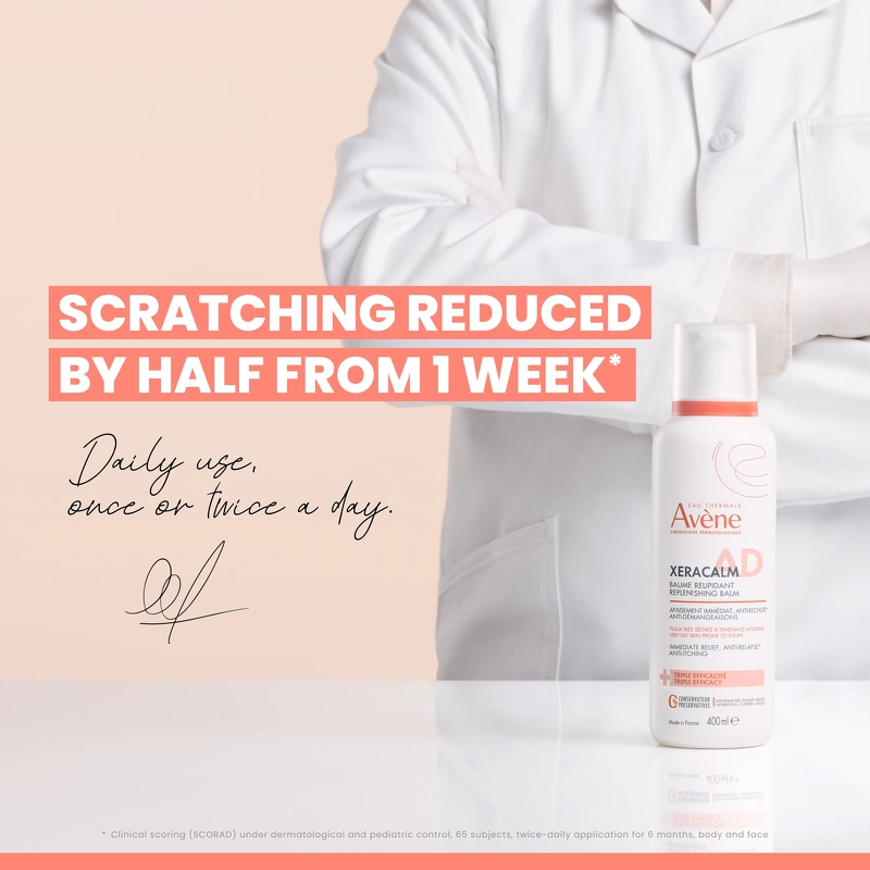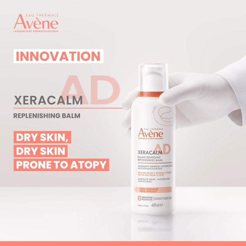 Avène Xeracalm AD Replenishing Balm er en nærende, genopbyggende og beroligende fedtcreme til meget tør, kløende og atopisk hud. Den kan bruges til krop og ansigt hos både voksne, børn og spædbørn, og er udviklet med særligt udvalgte ingredienser og emballage, som er med til at minimere risikoen for allergiske reaktioner.