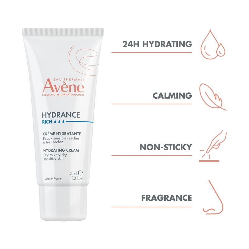 Avène Hydrance Rich Hydrating Cream er en nærende fugtighedscreme til sensitiv, dehydreret hud ved en tør/meget tør hudtype.