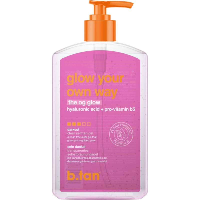 b.tan Glow Your Own Way Self Tan Gel er en transparent selvbruner gelé, som giver din hud en dyb, gylden tan. Denne gelé er nem at påføre huden, hvor indholdet af 100% naturligt DHA udvikler en naturlig, ensartet kulør.