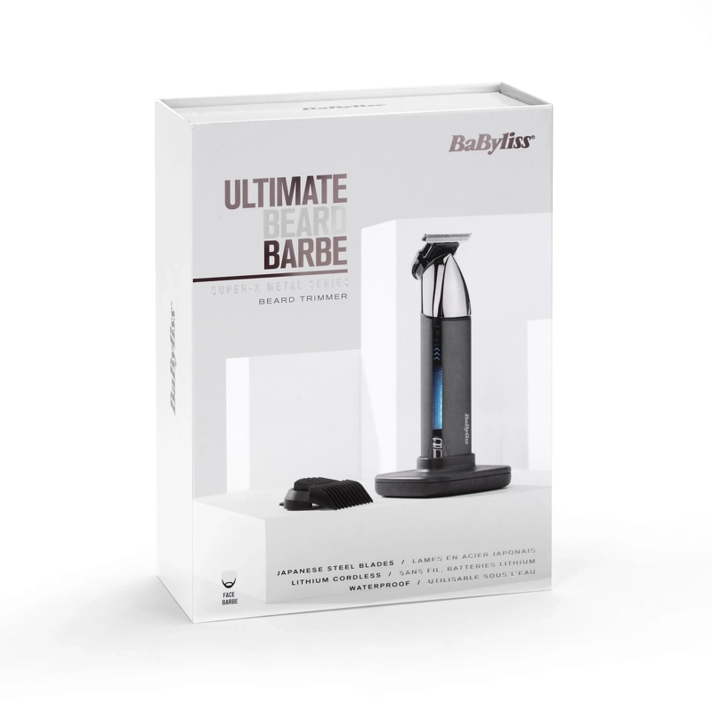 BaByliss Super X Metal Beard Trimmer - Chrome - T996E er det perfekte værktøj til daglig pleje af kortere og længere skægstubbe og skæg.