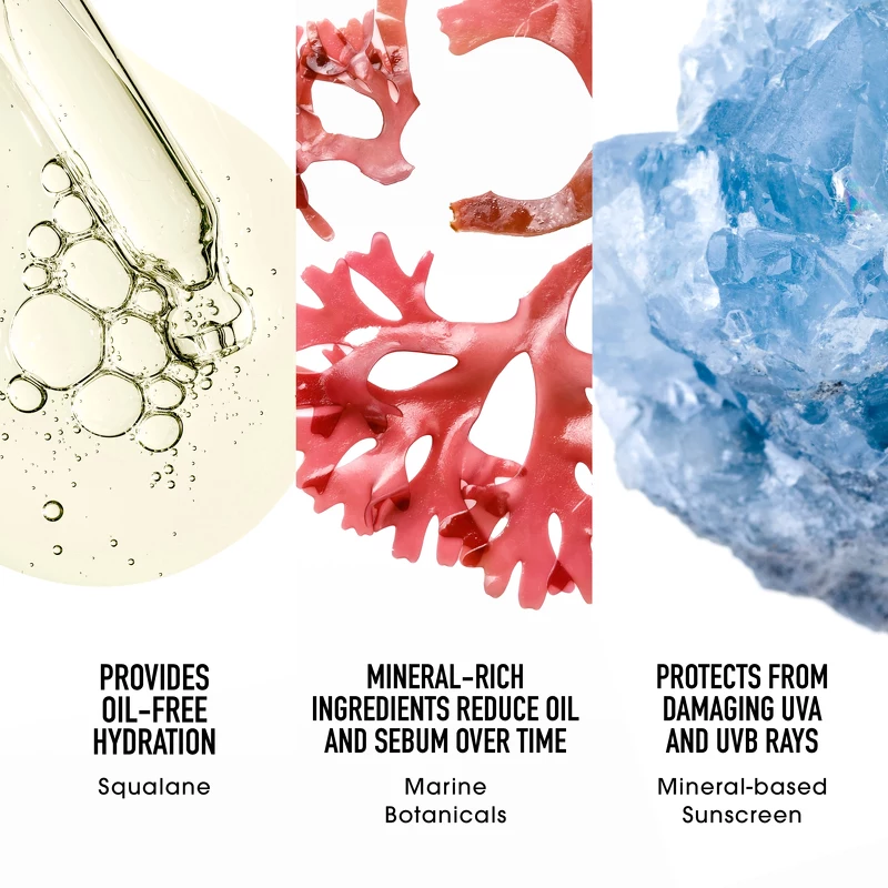 Perfekt til fedtet og kombineret hudtype samt sensitiv hud, der er tilbøjelig til akne. Udjævner synligt hudtonen og slører ufuldkommenheder. Det er også klinisk bevist at den kan kontrollere olieret hud øjeblikkeligt i op til 12 timer. Derudover reducerer den skinnende hud øjeblikkeligt med 67 %. Slører udseendet af ufuldkommenheder, porer, urenheder og rødme.