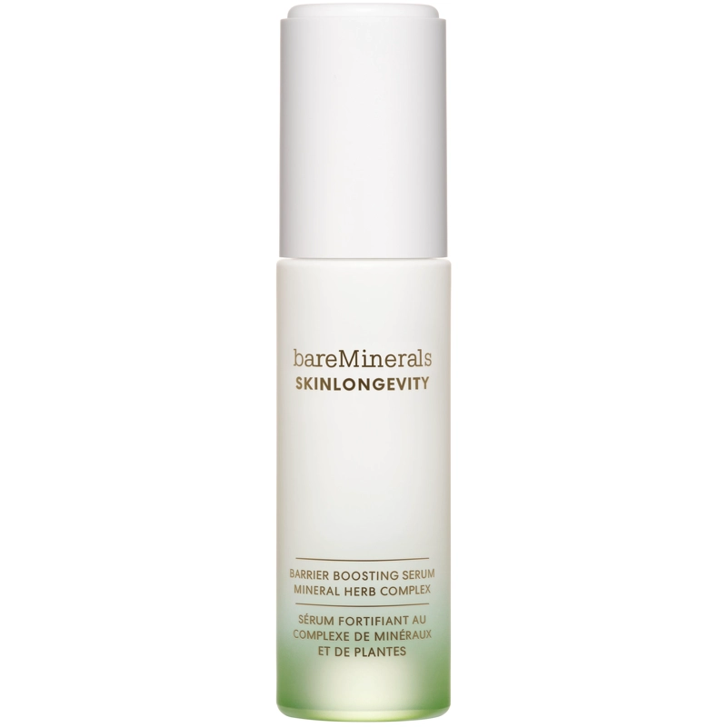 bareMinerals Skinlongevity Barrier Boosting Serum er et let og effektivt serum, der styrker hudens barriere, øger fugtniveauet og reducerer synlige tegn på aldring. Skinlongevity Barrier Boosting Serum er drevet af et eksklusivt Mineral Herb Complex med niacinamid, som hjælper med at reparere, beskytte og styrke huden, så den fremstår sundere, glattere og mere modstandsdygtig. Den ikke-klæbrige formel trænger hurtigt ind i huden og giver øjeblikkelig hydrering, samtidig med at den over tid forbedrer hudens tekstur, fasthed og elasticitet.