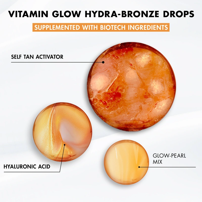 Serumet er beriget med en hydra-vitamin-mix bestående af glycerin, E-vitamin, hyaluronsyre og Biotech Plankton, samt en smart “Self-Tan Activator” og den unikke Glow-Pearl Mix, som sammen giver huden en strålende, solkysset finish. Du behøver ikke vælge mellem bronzer og selvbruner – dette serum tilpasser sig dit behov og skaber både glød og gradvist solbrun tone.
