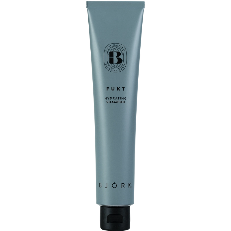 Björk FUKT Hydrating Shampoo er en fugtgivende shampoo til tørt, kruset og farvet hår. Med en nærende formel med birketræekstrakt, arganolie og solsikkeolie, som fugter, forbedrer hårkvaliteten, beroliger hovedbunden og giver en silkeblød følelse. Den har en luksuriøs og blomstrende duft med strejf af vanilje.