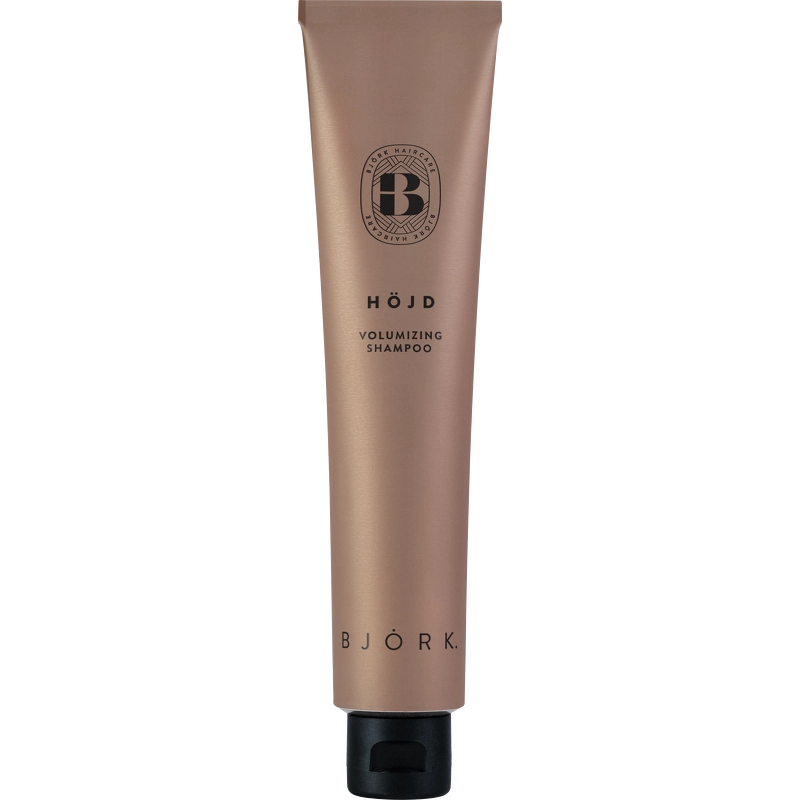 Björk HÖJD Volumizing Shampoo er en let, volumengivende shampoo til tyndt, fint og/eller livløst hår. Formuleringen indeholder et særligt protein, der skaber afstand mellem hvert hårstrå og dermed forbedrer hårets volumen. Proteinet giver desuden håret en naturlig glans samtidig med, at det tilfører næring fra rod til spids.