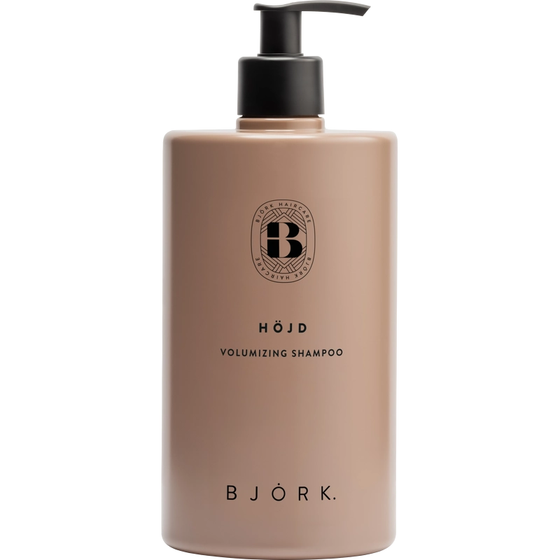 Björk HÖJD Volumizing Shampoo er en let, volumengivende shampoo til tyndt, fint og/eller livløst hår. Formuleringen indeholder et særligt protein, der skaber afstand mellem hvert hårstrå og dermed forbedrer hårets volumen. Proteinet giver desuden håret en naturlig glans samtidig med, at det tilfører næring fra rod til spids.