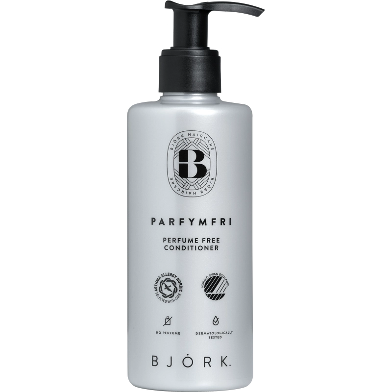 Björk PARFYMFRI Perfume Free Conditioner er en en mild, parfumefri og udredende balsam, der efterlader håret blødt og fugtet med en naturlig glans. Den indeholder panthenol og naturlige ekstrakter fra sheasmør og havreolie, som sammen fugter, blødgør og reducerer irritation.