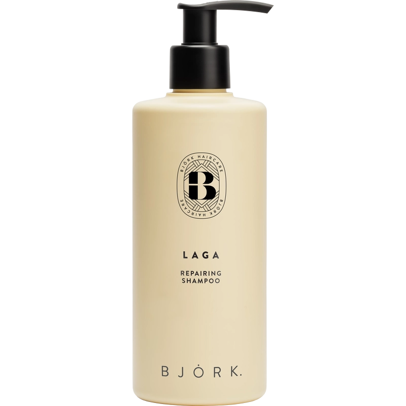 Björk LAGA Repairing Shampoo er en reparerende shampoo til skadet, tørt og/eller kemisk behandlet hår. Formularen indeholder algeekstrakt, som hjælper med at forebygge spaltede spidser, øger hårfibrenes fylde og beskytter håret mod skader.