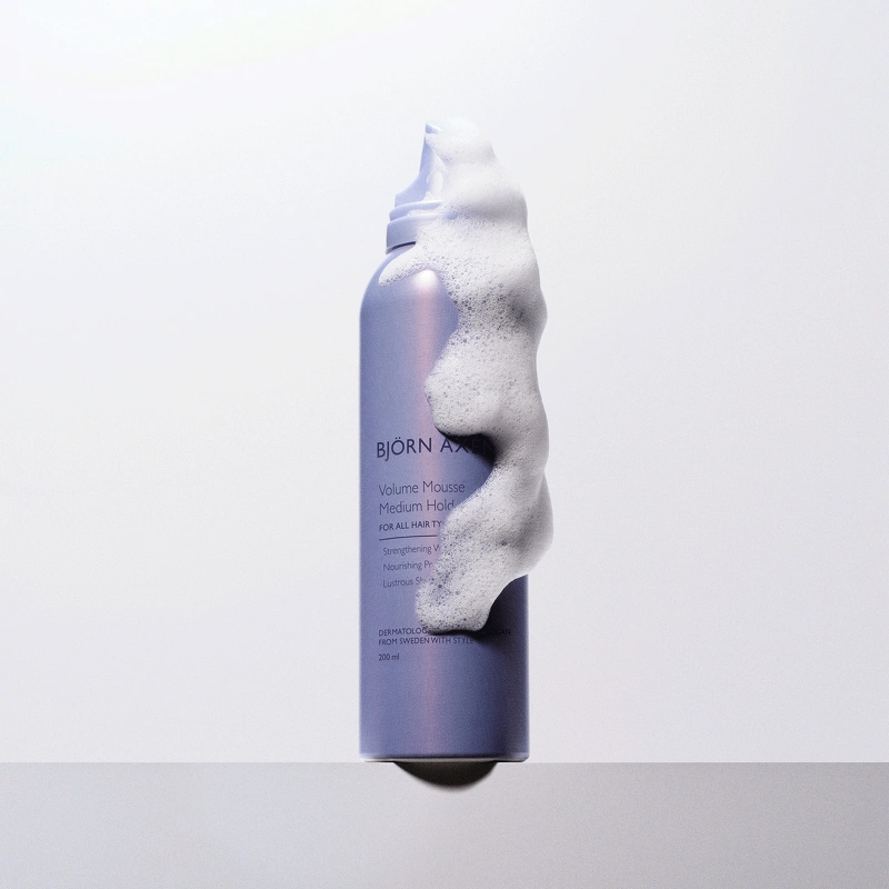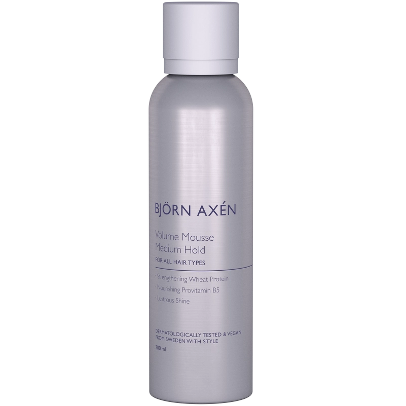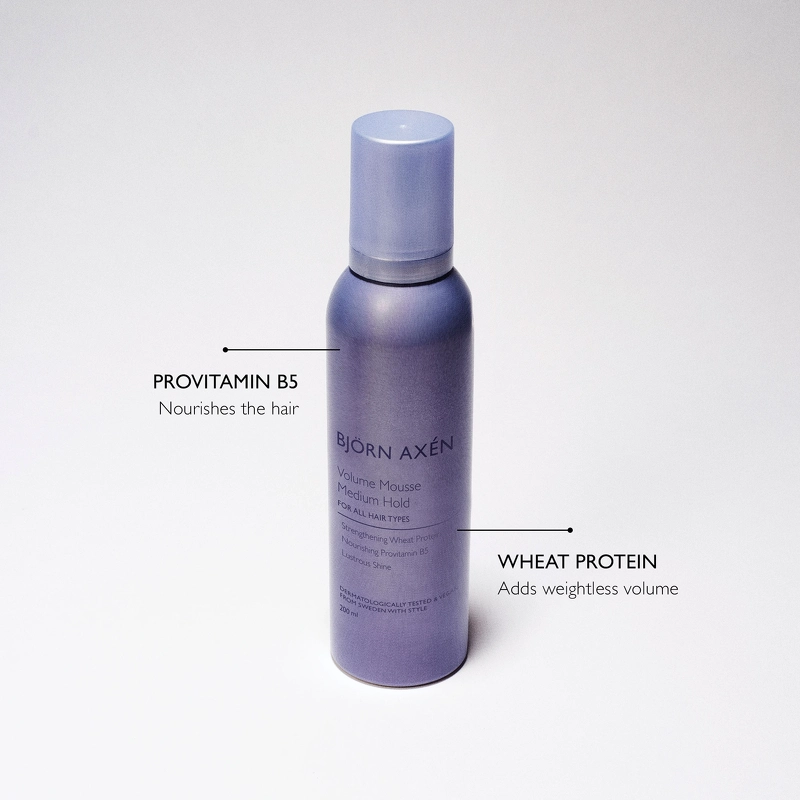 Björn Axén Volume Mousse Medium Hold er en plejende og volumegivende hårskum, der er super nem at arbejde med. Det er en letvægtsskum, som giver et medium hold. Den virker varmebeskyttende, så den er god at bruge inden føntørrer eller glattejern. Beriget med vitaminer og proteiner som plejer og beskytter håret. Har et UV-filter der beskytter håret mod solen. Björn Axén Volume Mousse Medium Hold er velegnet til alle hårtyper. Egner sig desuden også til den veganske livsstil!