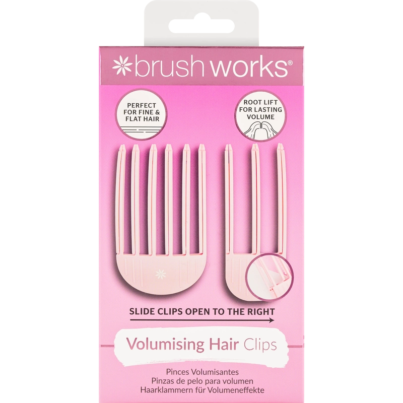 Brushworks Volumising Hair Clips er et sæt med 2 volumen-hårclips, som er designet til at give ekstra løft og volumen ved hårrødderne og er særligt velegnede til fint eller fladt hår, der mangler fylde. Clipsene hjælper håret med at opnå et mere voluminøst udtryk under styling og kan anvendes i både vådt og tørt hår.