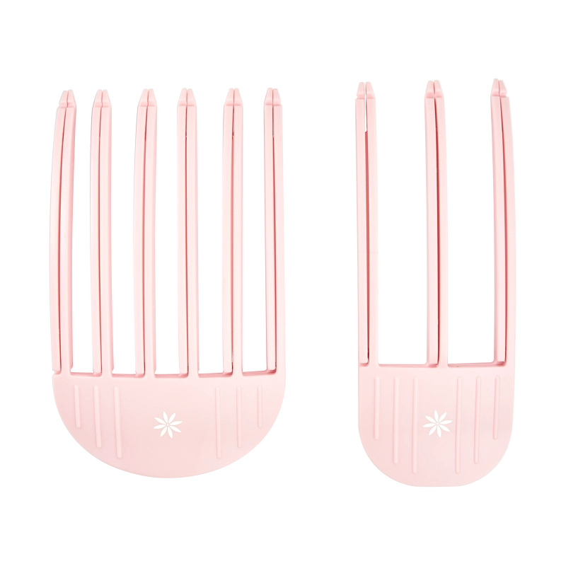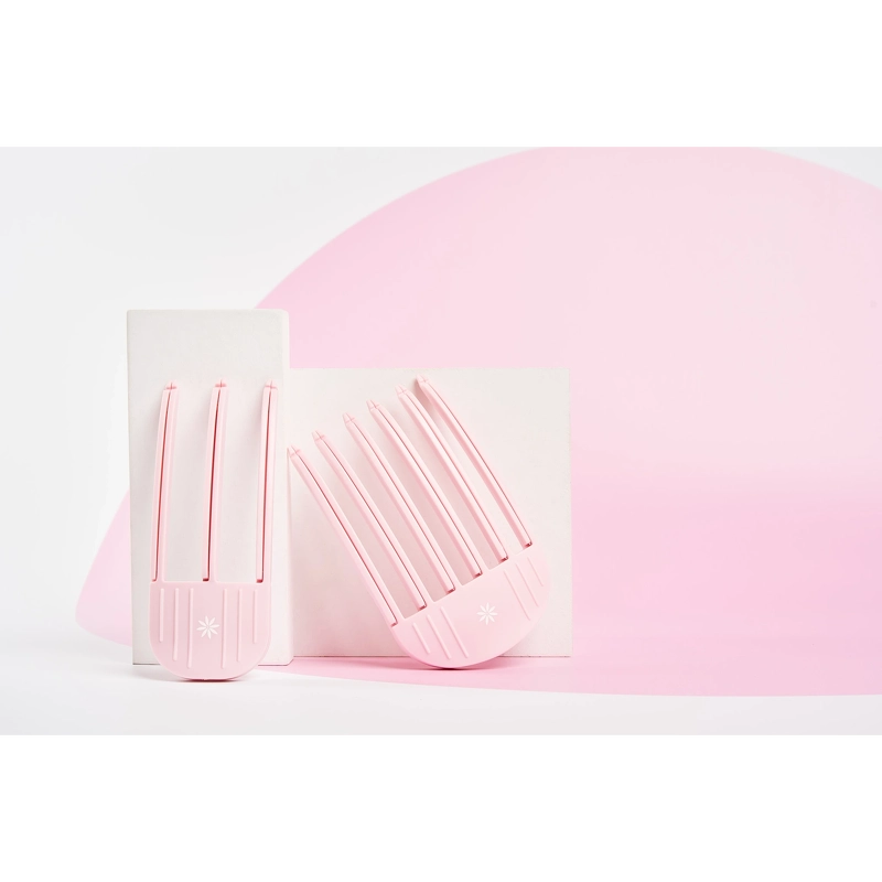 Sættet indeholder to hårclips, én lille og én stor, i en lyserød farve, fremstillet i et let og holdbart materiale. Clipsene kan bruges til de fleste hårtyper og er ideelle til at skabe løft og mere fylde ved hårrødderne.