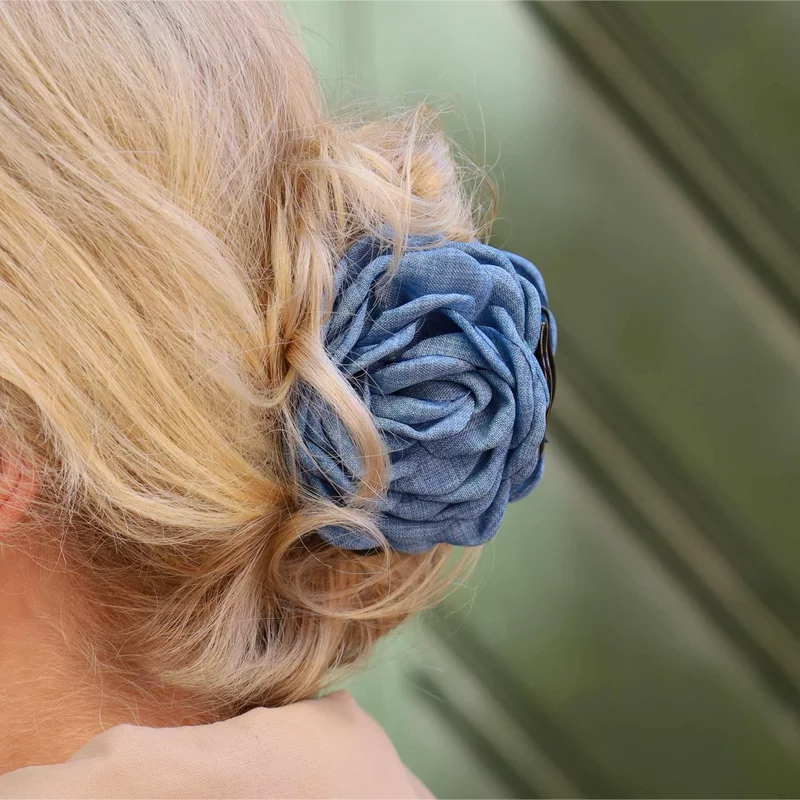 By Stær DAISY Flower Hair Clip Small - Blue er en utrolig smuk og dekorativ hårklemme, der kan fuldende ethvert festlook eller pifte ens hverdags outfit op. Denne klemme har kraftige 'tænder', som sørger for et stærkt hold, og er lavet som en rose, der giver en flot effekt i håret.