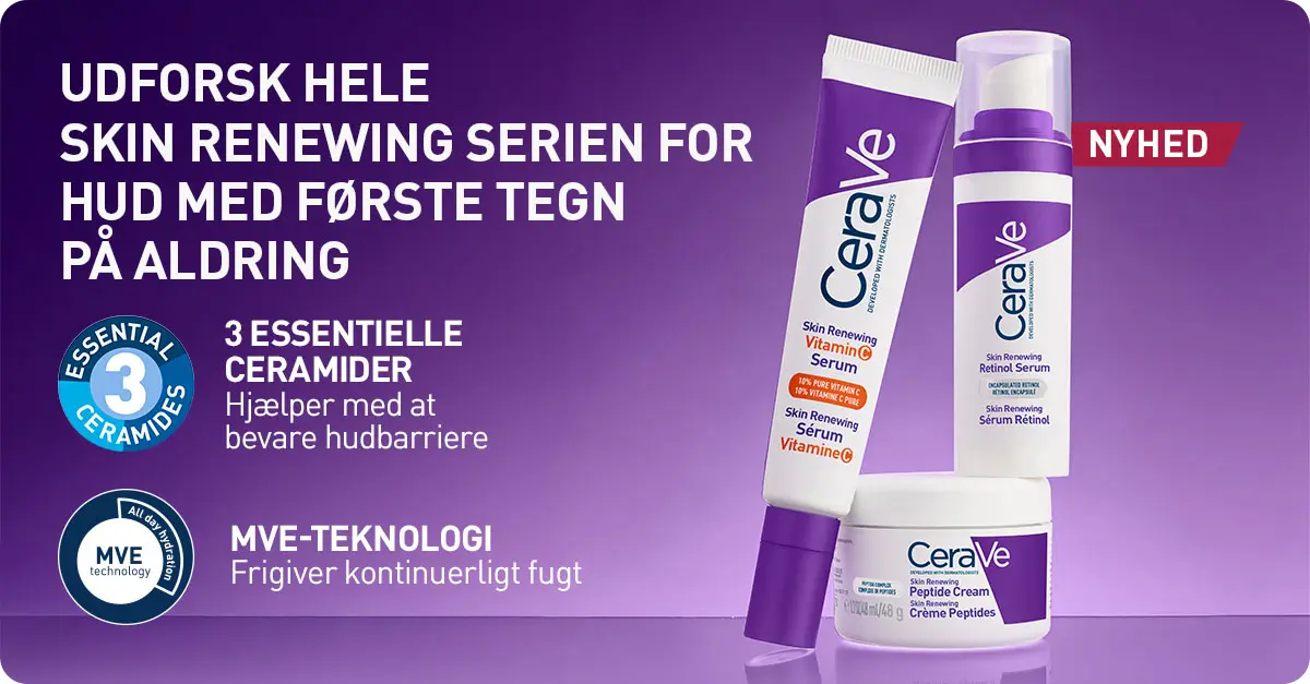 CeraVe har taget verden med storm med deres enkle men supereffektive produkter, der plejer og nærer huden ved hjælp af nøje udvalgte, aktive ingredienser. Oplev selv, hvordan CeraVes hudpleje med tre essentielle ceramider hjælper med at holde din hud fugtet, beskyttet og stærk.