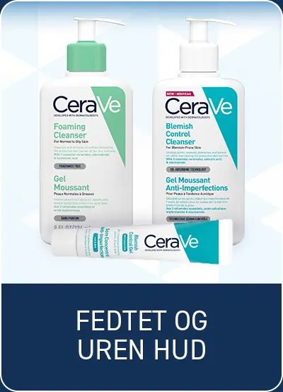 Dette kan ramme alle hudtyper, uanset om du i forvejen har fedtet hud, uren hud eller sensitiv hud. Derfor har CeraVe i samarbejde med dermatologer udviklet en række produkter særligt henvendt mod forskellige hudtyper - alle med de tre essentielle ceramider og alle uden parfume.