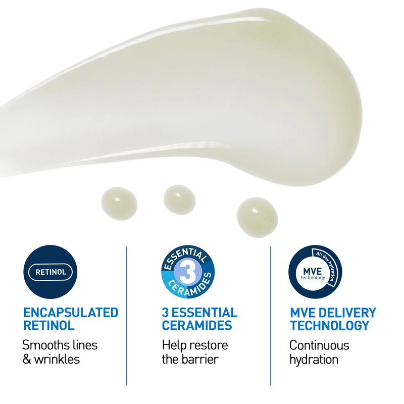 Formlen med indkapslet retinol og hyaluronsyre fugter huden og reducerer forekomsten af fine linjer og rynker, samtidig med at den udjævner hudtonen og forbedrer hudens udstråling. Den er også tilsat 3 essentielle ceramider, som hjælper med at styrke hudens beskyttende barriere.