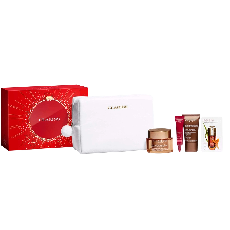 Clarins Extra Firming Xmas Kit 2025 er et ekspertsæt, som er ideelt til kvinder, der ønsker en glattere, fastere, mere ungdommelig og opstrammet hud: Påfør den genopfyldelige Extra-Firming Day Cream hver dag, med sin nye [COLLAGEN]3 TEKNOLOGI (collagen-polypeptid + pekannødderekstrakt + mitracarpus-ekstrakt) for at hjælpe med at forbedre hudens fasthed.