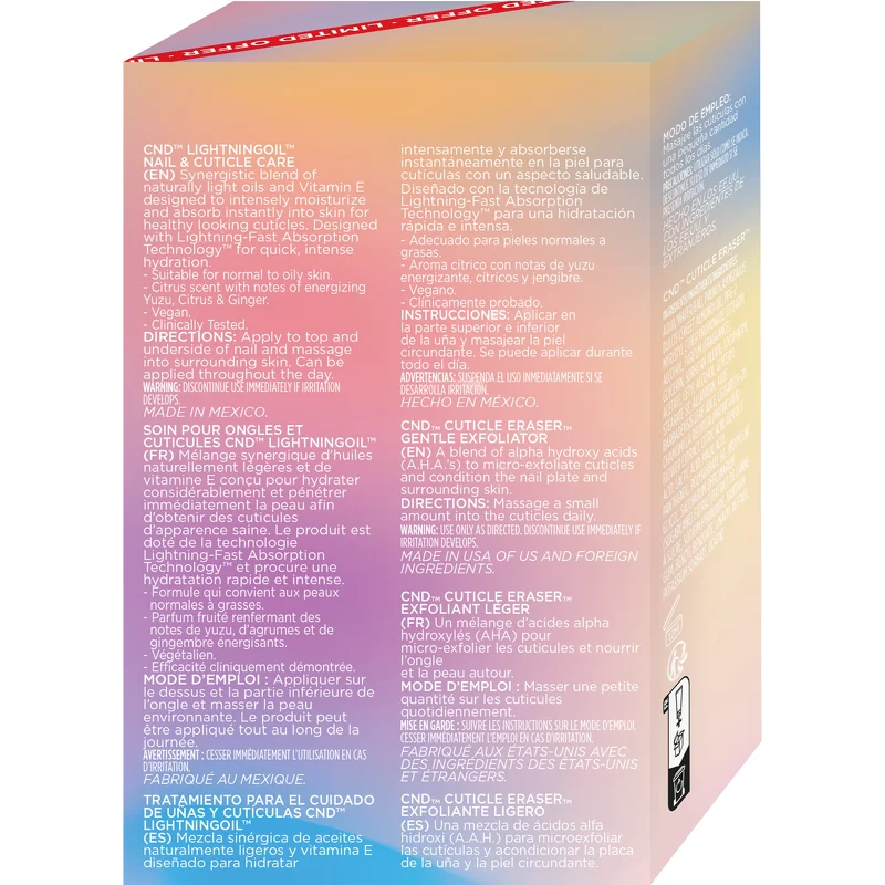 CND™ Cuticle Couple Kit kombinerer to professionelle plejeklassikere i ét eksklusivt sæt – udviklet til at nære, udglatte og perfektionere neglebåndene. Dette professionelle kit kombinerer en nærende negle- & neglebåndsolie med en skånsom AHA-behandling, der eksfolierer, blødgør og styrker dine neglebånd, samtidig med at forekomsten af neglerødder reduceres. Forkæl dine hænder med en komplet plejeoplevelse, der både revitaliserer og perfektionerer – for smukke, sunde negle fra rod til spids.