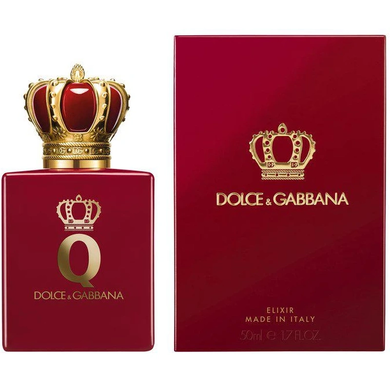 Q by Dolce&Gabbana Elixir er en skabelse, der afslører sin blomstrede, ravfarvede sjæl med elegance og karakter. Duften er skabt af Daphne Bugey eksklusivt for Dolce&Gabbana. Top noterne er en eksplosion af kirsebærnektar og åbner duften med mørke, saftige kirsebær der dykker ned i en varm, fløjlsblød likør. I hjertet afslører nattens dronning sin magi. En blomst med cremehvide kronblade, der kun blomstrer én gang i måneskinnet og spreder en berusende duft. I bunden omslutter egetræsmos kompositionen med fløjlsbløde, jordagtige toner, der vækker skovens dybde og hemmelige lys.