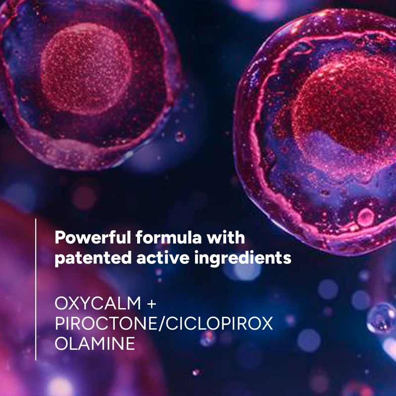 Formuleringen indeholder den patenterede OXYCALM-innovation reducerer irritation og dæmper selv den mest intense kløe, mens Piroctone Olamine og Ciclopirox Olamine virker direkte på årsagen til skæl og hjælper med at skabe balance i hårbundens mikrobiom. Keluamid bidrager til at fjerne skæl på en skånsom måde, så hårbunden føles ren, frisk og i bedre balance.