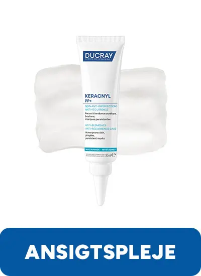 Med mere end 20 års erfaring med dermatologi er DUCRAY eksperter inden for fedtet og uren hud med tendens til akne. Uren hud kan manifestere sig på mange måder, herunder store, betændte røde bumser, samt sorte og hvide hudorme, og kan opstå både i ansigtet og på kroppen. Selvom uren hud ofte rammer teenagere, kan voksne også opleve udbrud med akne. Den øgede produktion af talg og betændelse, som karakteriserer uren og fedtet hud, skyldes blandt andet en overvækst og ubalance i bakterien C.acnes bakterien. Denne bakterie danner kolonier og er beskyttet af en biofilm, hvilket gør den særligt modstandsdygtig og god til at brede sig. Derfor er det afgørende at anvende plejeprodukter, der specifikt er målrettet disse problemer. KERACNYL er en hudplejeserie fra DUCRAY, der er særligt udviklet til at bekæmpe årsagerne til fedtet og uren hud med tendens til akne. Serien indeholder de to unikke aktive ingredienser, Myrtacine® og Celastrol, som sammen skaber en kraftfuld anti-inflammatorisk synergi og behandler alle stadier af uren og fedtet hud. Myrtacine®, der er udvundet fra middelhavsplanten Myrte, nedbryder C.acnes biofilm og forebygger dannelsen af ny biofilm. Celastrol er en 100% naturlig aktiv ingrediens, der effektivt beroliger huden og bekæmper både synlig og usynlig inflammation. Om du døjer med betændte bumser, hudorme, fedtet T-zone eller tilstoppede porer har KERACNYL-serien både rensende og plejende produkter til dig. I serien finder du nemlig både en skummende rens, en effektiv serum og cremer i forskellige formuleringer og teksturer, så du kan finde netop den løsning, der passer til din huds behov.