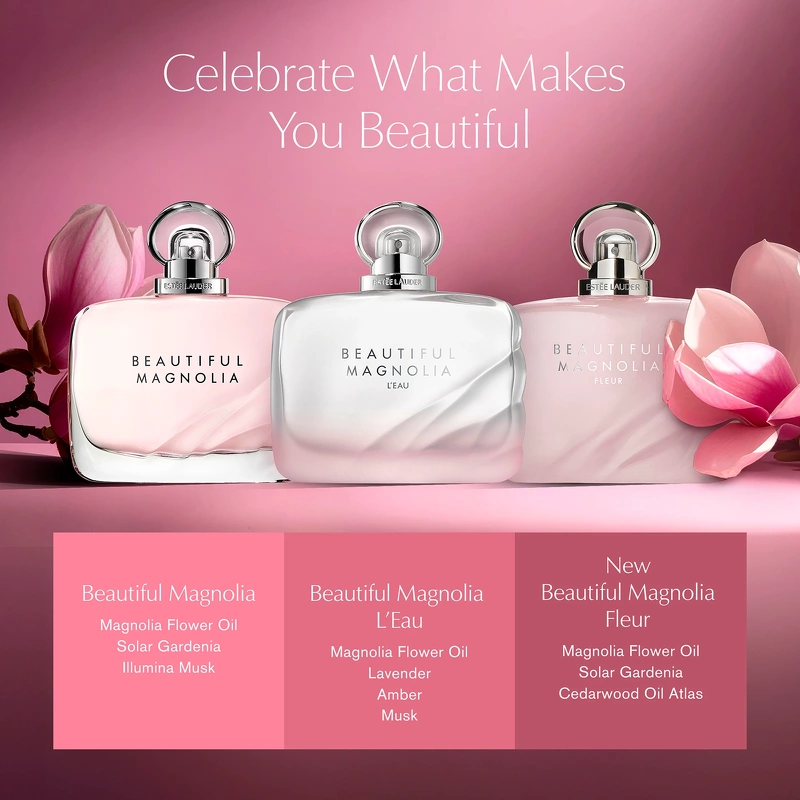 Beautiful Magnolia Fleur er en duft, der omfavner og forstørrer lyset i dig. Den er sprudlende og lys. Uforbeholdent levende. Med et optimistisk sus blomstrer den på din hud med signaturnoter af frodig Magnolia, solrig Gardenia Accord og fredfyldt Cedertræ. En glad og let blomsterduft.