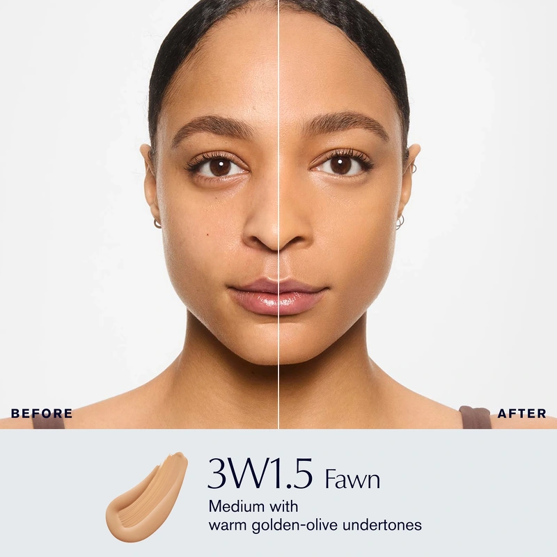 Denne foundation giver en smuk og naturlig finish, og udjævner hudtonen, skjuler urenheder og har en opbyggelig medium til fuld dækning. Findes på globalt plan i 60 nuancer på med kølige, neutrale og varme undertoner. Double Wear Foundation er vandfast, så den ændrer ikke farve, tværer ikke ud og smitter ikke af på tøjet. Den giver huden masser af fugt og farve, der holder i hele 24 timer - uanset stress og aktivitetsniveau.