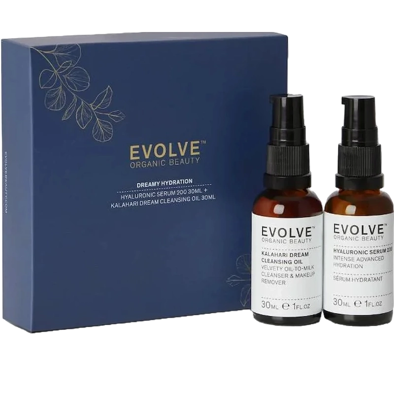 Find mere fra dette mærke:Evolve Golden Hour er en luksuriøs gaveæske, der giver huden en naturlig glød og intensiv pleje. Æsken indeholder den nærende Kalahari Dream Cleansing Oil, som skånsomt renser og efterlader huden blød og frisk, samt det fugtgivende Hyaluronic Serum 200, der udglatter og tilfører langvarig hydrering. Perfekt som selvforkælelse eller en smuk gave til en, du holder af.