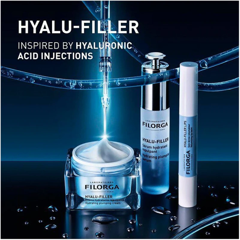 Oplev en fyldigere, glattere og mere gennemfugtet hud med Hyalu-Filler Cream fra FILORGA. Denne avancerede anti-aging creme er inspireret af to æstetiske injektionsteknikker - skin boosters og fillers - for at udfylde rynker, give dybdegående fugt og forbedre hudens struktur. Formlen indeholder fem typer af hyaluronsyre (højmolekylær, mellemmolekylær, lavmolekylær, tværbunden og mikrofragmenteret) som virker i hudens forskellige lag og stimulerer den naturlige produktion af hyaluronsyre. Biosaccharidgummi beskytter yderligere huden mod udtørring.