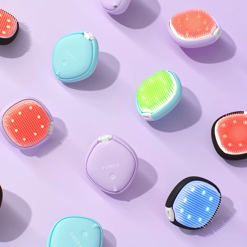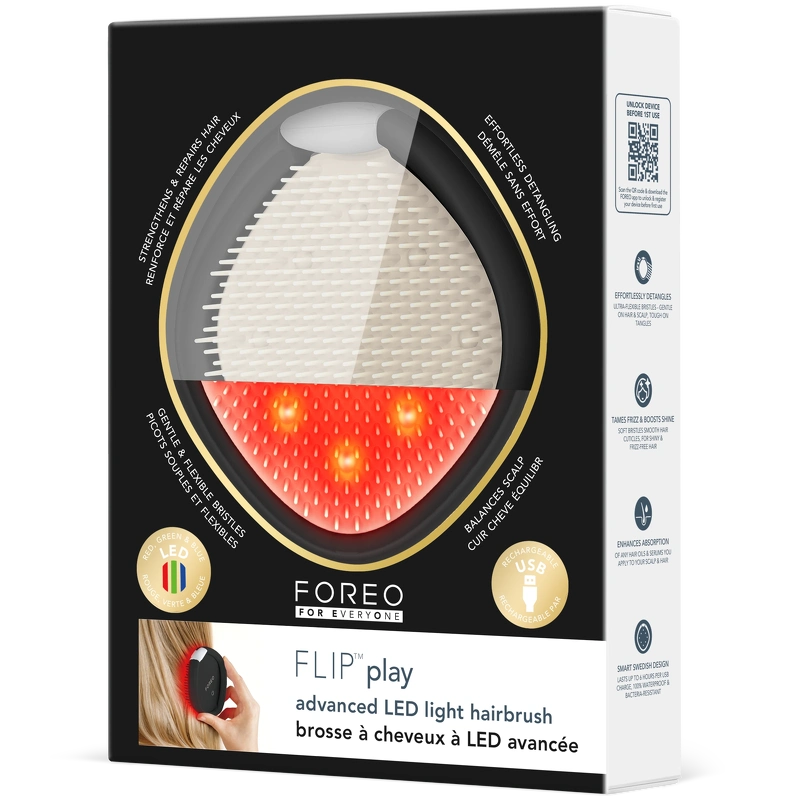 FOREO FLIP™ LED light hairbrush er en innovativ hårbørste med LED-lysterapi for sundere og stærkere hår.