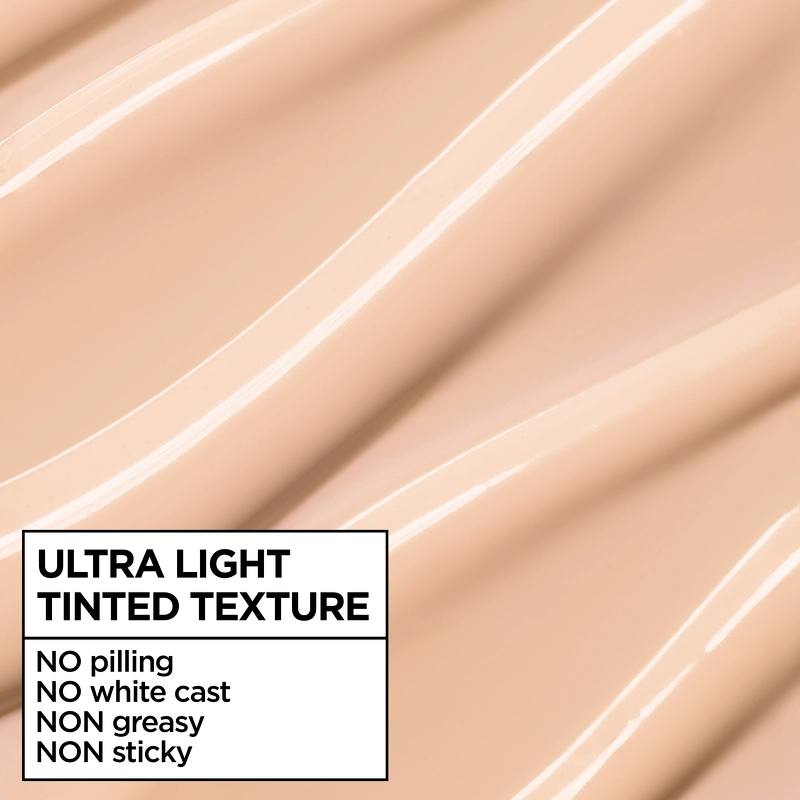 Produktet er til dig, der ønsker daglig, meget høj solbeskyttelse med en let og opfriskende** fornemmelse. Teksturen føles let, frisk og ikke klistret. Den let farvede formel giver en flot glød og et fejlfrit look***.