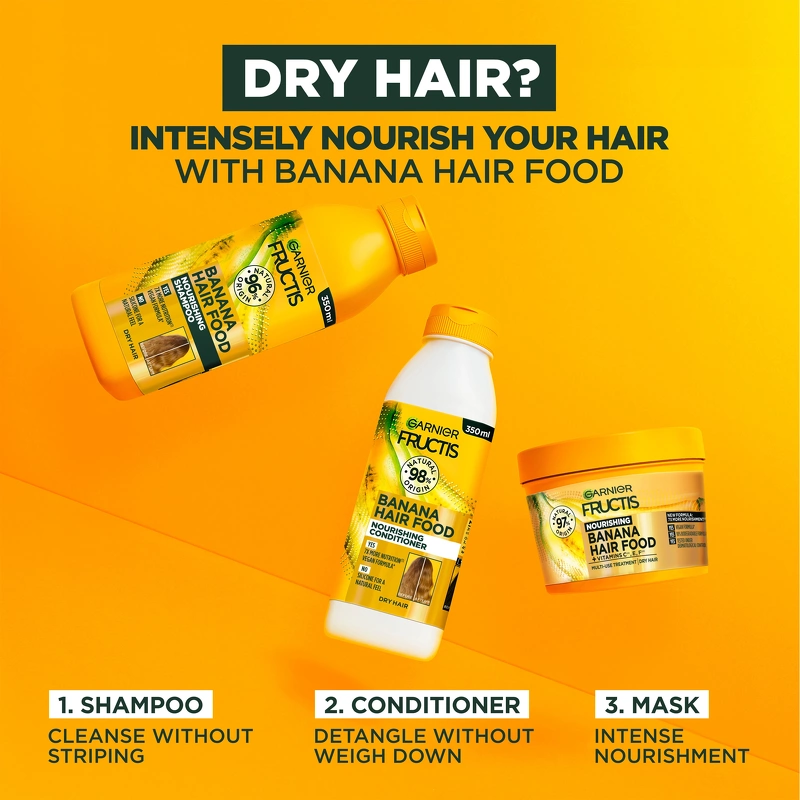 Garnier Fructis Banana Hair Food Shampoo er en nærende shampoo, som er udviklet til et tørt hår.